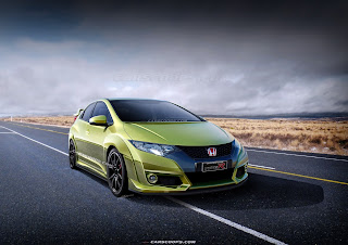 With our rendering, we've translated those horrid zebra-coated prototype mules into something much more visually palatable. Starting with its eye-punching, acidic green paint job - the initial response is that someone from Honda nicked off with a WTCC racer and made it road legal. Cue those bulging fender-flares, with half-cut lower sections and chiseled frontal air intakes. Fog-lights sit recessed into the outer corners of the bumper, whilst the lower center intake is dissected by angled framework that leads up into the intersecting glossy black section, migrating towards the grille.